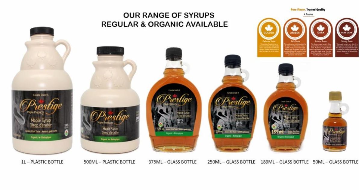 Prestige Maple Products specializes in the production, distribution and export of 100% pure Canadian maple products, including Maple Syrup and Maple Sugar available in both regular and organic certified lines.